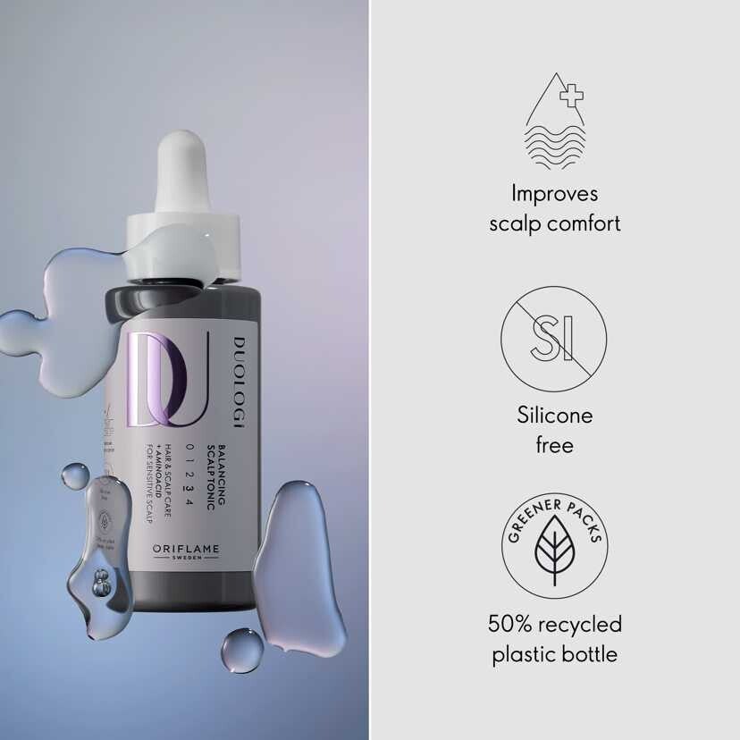 DUOLOGI Balancing Scalp Tonic is een topisch, kalmerend product om de gevoelige hoofdhuid onmiddellijk te kalmeren, droogheid en schilfers te verminderen en het comfort van de hoofdhuid te verbeteren.
