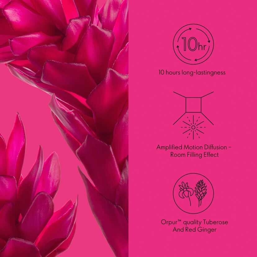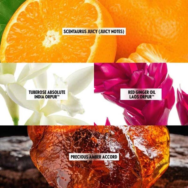 Een krachtige, vrouwelijke bloemengeur met amber en voluptueuze tuberoos. Het parfum is versterkt door een vleugje rode gember met een warme, rijke basis. Biedt 10 uur langhoudende kwaliteit.