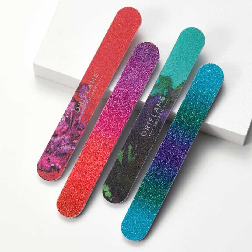Fleur je beautyroutine op met een set van vier nagelvijlen, bedrukt in levendige kleuren met een glitterige finish. Door de prachtige print op de verpakking, zijn deze nagelvijlen ook zeer geschikt om cadeau te geven!