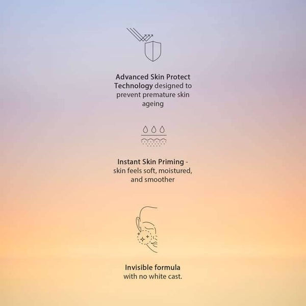 De geavanceerde Skin Protect-technologie beschermt je huid tegen de belangrijkste schadelijke externe factoren – UVA, UVB, vervuiling en vrije radicalen – en de superlichte anti-ageing formule laat je huid zacht, gehydrateerd en glad aanvoelen.