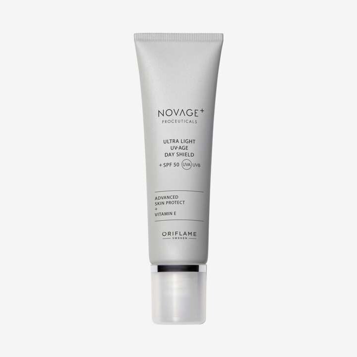 Novage+ Proceuticals Ultra Light UV-Age Day Shield SPF 50 is een redder in tweevoud, die je huid in één stap verbetert en beschermt: