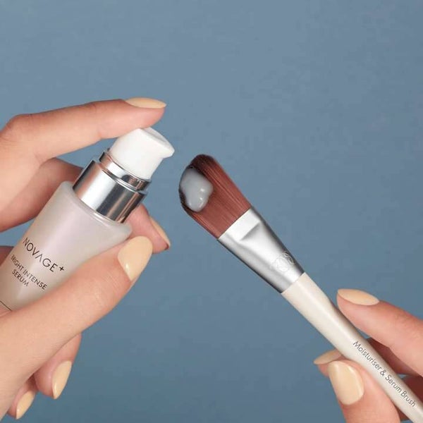 Gebruik het kwastje om je serum of crème gelijkmatig op het gezicht aan te brengen.
