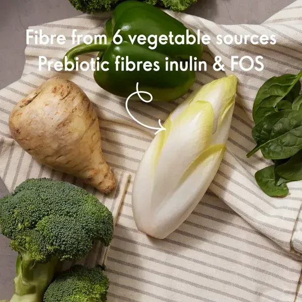 - 2 van de meest onderzochte prebiotische vezels – inuline uit witlof en FOS uit suikerbieten