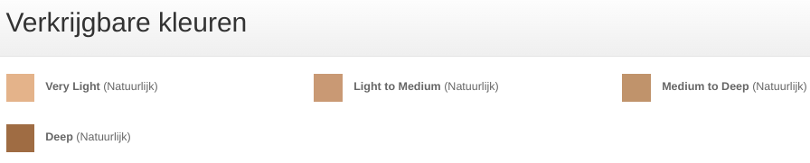 - Weinig kleuren voor een groot aantal huidtinten.