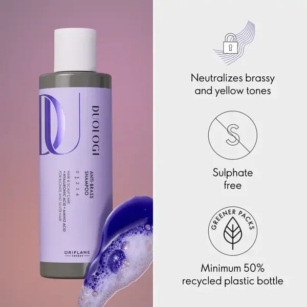 Netraliseer gele ondertonen en laat je koele blonde, grijze of zilveren haar zien met DUOLOGI Anti-Brass