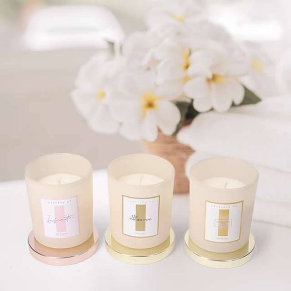 Limited Edition Infinita Geurkaars geïnspireerd op Infinita Eau de Parfum; Een klassiek vrouwelijk eau de parfum voor een heldere, aantrekkelijke geur die de essentie van de moderne vrouw omvat en haar eindeloze kracht laat zien.