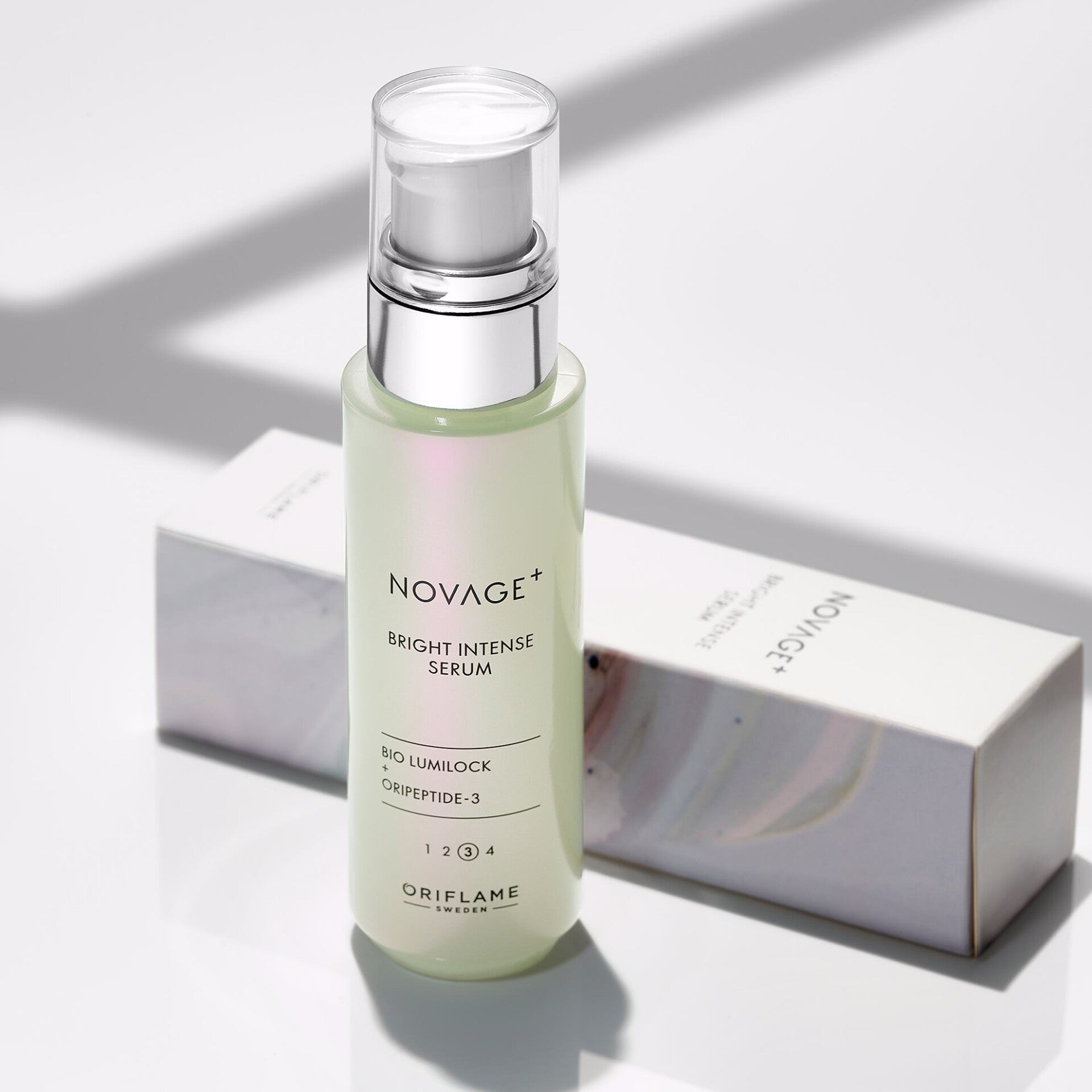 Novage+ Bright Intense Serum is een multi-actief antiverouderingsserum dat hyperpigmentatie en vlekken vermindert, de huidskleur verheldert en egaliseert en fijne lijntjes en rimpels vermindert.